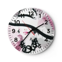 Väggklocka - Klocka på glas - En damportätt i svart och rosa - 30x30 cm