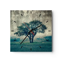 Väggklocka - Klocka på glas - Äppelträd på blå betesmark? - 40x40 cm