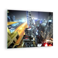 Glastavla - Bild på glas - Panorama över nattstaden med upplysta skyskrapor - 70x50cm - Underverk på öknen - Modern väggdekoration för vardagsrum och sovrum ARTTOR