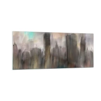 Glastavla - Bild på glas - Komposition av stål, sten och dimma - 100x40 cm