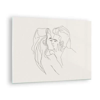 Glastavla - Bild på glas - En sensuell kyss av ett par i konturlinjen - 70x50cm - I kärlekens famn - Modern väggdekoration för vardagsrum och sovrum ARTTOR