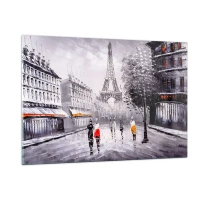 Glastavla - Bild på glas - Promenad i Paris - 120x80 cm