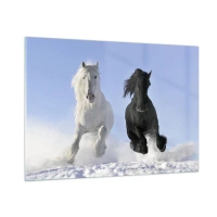 Glastavla - Bild på glas - Svart-vit galopp - 100x70 cm