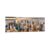 Glastavla - Bild på glas - Förgylld metropolis - 90x30 cm