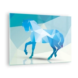 Glastavla - Bild på glas - Geometrisk häst i nyanser av blått och vitt - 70x50cm - Geometrisk häst i turkos - Modern väggdekoration för vardagsrum och sovrum ARTTOR