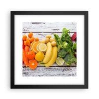 Väggklocka - Klocka på glas - Färgglada frukter och grönsaker på en träbakgrund - 30x30cm - Räcker det inte? - Modern väggdekoration för vardagsrum, kök och sovrum ARTTOR