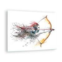Glastavla - Bild på glas - Bågskytt i en dynamisk akvarellmiljö - 70x50cm - Mytomspunnen kämpe med brinnande båge - Modern väggdekoration för vardagsrum och sovrum ARTTOR