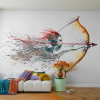 Fototapet Standard Eco - Bågskytt i en dynamisk akvarellillustration - 100x70cm - Mytomspunnen kämpe med brinnande båge - Modern väggdekoration för vardagsrum och sovrum ARTTOR