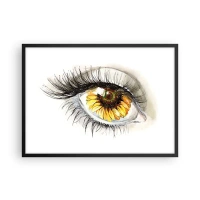 Glastavla - Bild på glas - Ett öga med solrosmotiv omgivet av fina detaljer - 70x50cm - Blick het som sommar - Modern väggdekoration för vardagsrum och sovrum ARTTOR