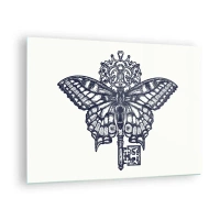 Glastavla - Bild på glas - Illustration av en fjäril med en nyckel i mitten - 70x50cm - Hjärtats alla hemligheter - Modern väggdekoration för vardagsrum och sovrum ARTTOR