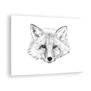 Glastavla - Bild på glas - Teckning av ett rävhuvud på en vit bakgrund - 70x50cm - Kan dessa ögon ljuga? - Modern väggdekoration för vardagsrum och sovrum ARTTOR