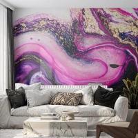 Fototapet Standard Eco - Abstrakt komposition av lila och guld - 100x70cm - En stund bakom kulisserna - Modern väggdekoration för vardagsrum och sovrum ARTTOR