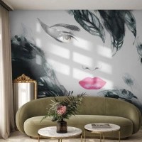 Fototapet Premium Sand - Observera! Femme fatale - Abstraktion, Kvinnans ansikte, Porträtt av en kvinna - 400x280 cm