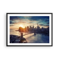 Glastavla - Bild på glas - Utsikt över staden vid solnedgången med bron i förgrunden - 70x50cm - Västkulturens monument - Modern väggdekoration för vardagsrum och sovrum ARTTOR