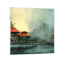 Glastavla - Bild på glas - Duggig dag i hamnen - 30x30 cm