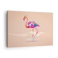 Canvastavla - Bild på duk - En abstrakt flamingo i ljusa pastellfärger. - 70x50cm - Goda emotioners fågel - Modern väggdekoration för vardagsrum och sovrum ARTTOR