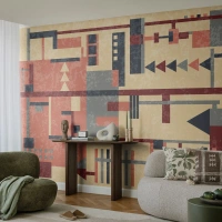 Fototapet Standard Eco - Geometrisk abstraktion i retrostil - 100x70cm - Kombination av vertikala och horisontella element - Modern väggdekoration för vardagsrum och sovrum ARTTOR
