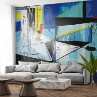 Fototapet Standard Eco - Abstrakt geometrisk komposition i intensiva färger - 100x70cm - Se värden ur en vinkel... - Modern väggdekoration för vardagsrum och sovrum ARTTOR