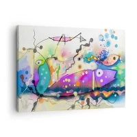 Canvastavla - Bild på duk - Abstrakt fisk i en färgglad, surrealistisk komposition - 70x50cm - Det saknas ord! - Modern väggdekoration för vardagsrum och sovrum ARTTOR