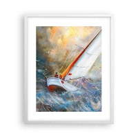 Affisch i vit ram - Springande på vågorna - 40x50 cm