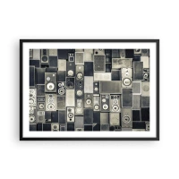 Glastavla - Bild på glas - En komposition av retrohögtalare i grå nyanser - 70x50cm - Allt väl - Modern väggdekoration för vardagsrum och sovrum ARTTOR