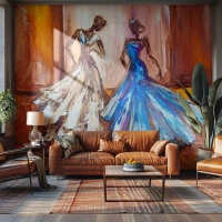 Fototapet Standard Eco - En abstrakt målning av två kvinnor i eleganta klänningar. - 100x70cm - Prydlig duett - Modern väggdekoration för vardagsrum och sovrum ARTTOR