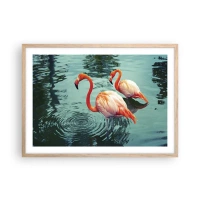 Fototapet Premium Canvas - Nu är vi på modet - Flamingos, Fåglar, Natur - 100x70 cm
