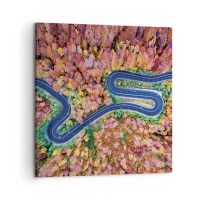 Canvastavla - Bild på duk - Slingrande väg genom skogen - 70x70 cm