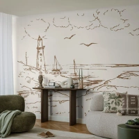 Självhäftande Fototapet Deluxe Sticker - Sommarminnets kontur - Grafik, Kust, Fyr - 300x210 cm