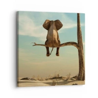 Väggklocka - Klocka på glas - En elefant som sitter på grenen av ett ensamt träd mot himlen - 30x30cm - Ny synvinkel - Modern väggdekoration för vardagsrum, kök och sovrum ARTTOR