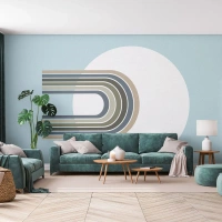 Fototapet Standard Eco - Geometrisk komposition med bågar och en cirkel på en blå bakgrund - 100x70cm - Ostoppad attraktionskraft - Modern väggdekoration för vardagsrum och sovrum ARTTOR