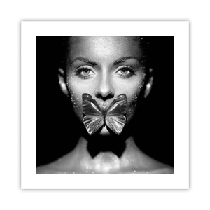 Affisch i ram av ljusek - Fjärilkyss - 40x40 cm