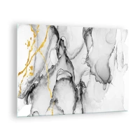 Glastavla - Bild på glas - Abstrakt svartvit komposition med en guldfärgad accent - 70x50cm - Komposition med guldmotiv - Modern väggdekoration för vardagsrum och sovrum ARTTOR