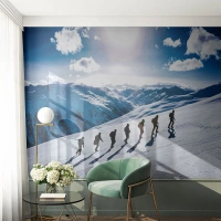 Fototapet Standard Eco - En grupp klättrare på en snötäckt bergsstig - 100x70cm - Erövrarnas lag - Modern väggdekoration för vardagsrum och sovrum ARTTOR