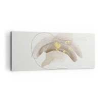 Canvastavla - Bild på duk - En abstrakt komposition i nyanser av beige och guld. - 70x50cm - Träffat i rummet - Modern väggdekoration för vardagsrum och sovrum ARTTOR