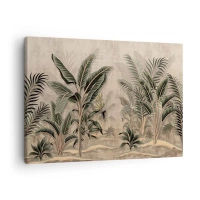 Canvastavla - Bild på duk - Palmer och tropisk vegetation i nyanser av grönt mot en beige bakgrund - 70x50cm - Bild i kolonial stil - Modern väggdekoration för vardagsrum och sovrum ARTTOR