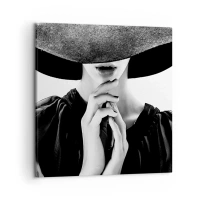 Fototapet Premium Canvas - Dold skönhet - Kvinna I En Hatt, Kvinnors händer, Mode - 200x140 cm
