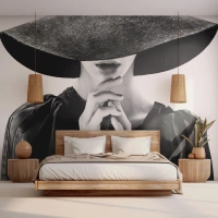 Fototapet på mått Premium Sand - Dold skönhet - Kvinna I En Hatt, Kvinnors händer, Mode