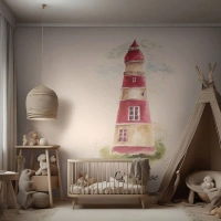 Fototapet Standard Eco - Röd och vit akvarell fyr - 100x70cm - Det är alltid något väder - Modern väggdekoration för vardagsrum och sovrum ARTTOR