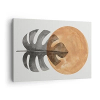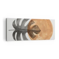 Canvastavla - Bild på duk - Monsterablad och guldcirkel på en ljus bakgrund - 70x50cm - Alltid solen - Modern väggdekoration för vardagsrum och sovrum ARTTOR