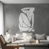 Fototapet Standard Eco - Silhuett av en kvinna i sittande ställning mot en grå bakgrund - 100x70cm - I drömmarnas värld - Modern väggdekoration för vardagsrum och sovrum ARTTOR