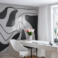 Fototapet Standard Eco - Svartvit abstraktion med organiska linjer - 100x70cm - Abstrakt lek i en labyrint - Modern väggdekoration för vardagsrum och sovrum ARTTOR