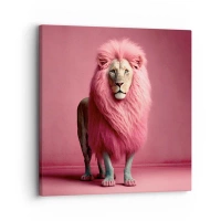 Väggklocka - Klocka på glas - Ett lejon med en intensivt rosa man mot en bakgrund av samma färg - 30x30cm - Och du är inte längre rädd - Modern väggdekoration för vardagsrum, kök och sovrum ARTTOR