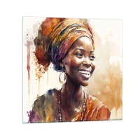 Glastavla - Bild på glas - Afrikansk drottning - 30x30 cm