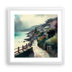 Affisch i vit ram - Medelhavsstad - 40x40 cm