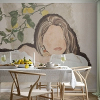 Fototapet på mått Självhäftande Deluxe Sticker - Sydlig skönhet - Kvinna, Citroner, Minimalism