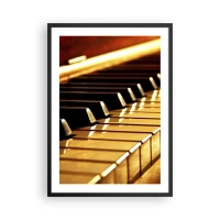 Affisch i svart ram - Närbild av pianotangenter i gyllene ljus - 50x70cm - Obegränsade möjligheter - Modern väggdekoration för vardagsrum och sovrum ARTTOR