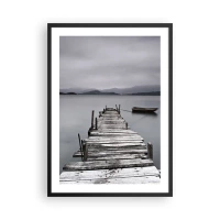 Affisch i svart ram - En gammal pir med en båt på lugnt vatten - 50x70cm - Imorgon kan du ge dig iväg - Modern väggdekoration för vardagsrum och sovrum ARTTOR