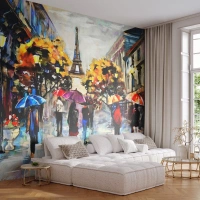 Fototapet Standard Eco - Höstparis i regnet med färgglada paraplyer - 100x70cm - Särskilt vacker på hösten - Modern väggdekoration för vardagsrum och sovrum ARTTOR