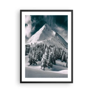 Affisch i svart ram - Vinterbergslandskap med snötäckta träd - 50x70cm - Snö- och islandet - Modern väggdekoration för vardagsrum och sovrum ARTTOR